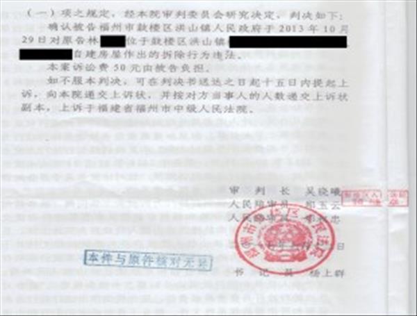 京平拆迁律师介入后,首先通过调查取证,从福州市公安局鼓楼分局作出的《公安机关办理信访事项告知书》得知,该违法强拆行为为被告实施。并通过福州市国土资源局鼓楼分局作出的《申请信息公开政府信息的答复》中了解到,被告在违法强拆行为中没有作出行政强制决定也未事先催告当事人履行义务及相关催告文书,强拆程序严重违法。被告违法强拆原告房屋,实体及程序上均存在严重违法,侵犯了原告的合法权益。在掌握关键证据的基础上,京平拆迁律师团宋金玉、魏巍律师协助林先生将被告的违法行政行为诉至福州市鼓楼区人民法院。